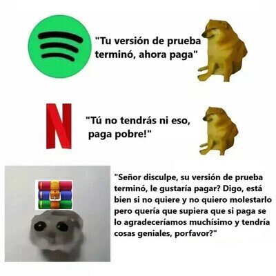 los de spoty son unos clasistas y exclusivista los otros son mas humildes y dejan que todos usen sus servicios freeeee