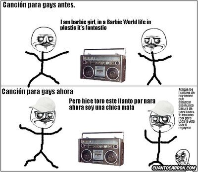 Ríete de maricones y negros. Como si te ríes de heteros y blancos. Hay que tener en cuenta que los que hacen chistes sobre homosexuales, no son homófobos, ni los que lo hacen sobre negros son nazis. Es humor, humor basado en estereotipos, que puede hacer más o menos gracia, pero que en el fondo no son dañinos.