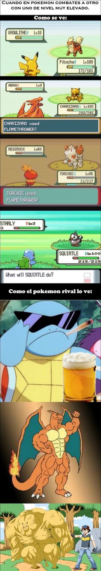 Cuando usas un Pokémon con nivel elevado contra uno de bajo nivel