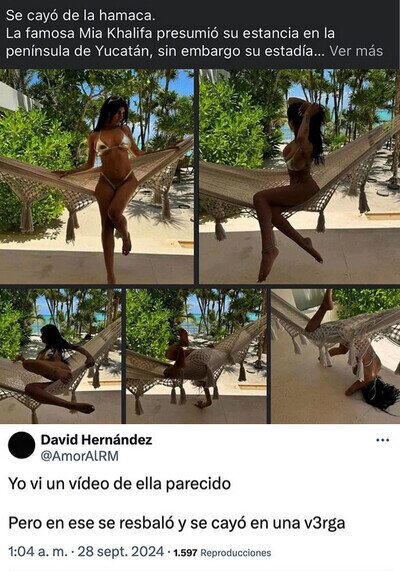 Mia Khalifa se cayó de la hamaca