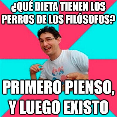 #19 #19 nightmarekks dijo: Hombre, si hubiera sido socrates aun bueno pero es que el que lo dijo fue rene descartes#23