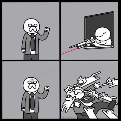 Diosss!! Jajajajaj Me acaba de pasar hoy mismo, salía del metro y alguien me ha apuntado con un láser y lo primero que he pensado es: "Mierda un francotirador, ¡Voy a Morir!" xDD