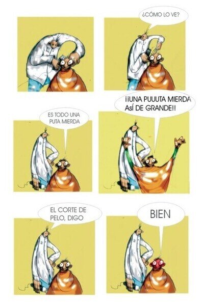 #17 #17 brcolchonero4 dijo: #2 si no lo lees no se puede entender la viñeta :mirada:si, es cierto, yo no lo leí al principio y no lo entendí, luego ya lo leí todo y es cierto y he de añadir que ese cartel tiene mucha razón, aunque también es muy cierto, lo que entiendes las peluqueras por un par de cm