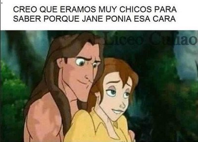 Genial el cartel, pero, ¿no deberia ser Chita o cualquier otro que no sea Tarzan quien haga la pregunta?